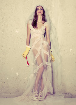 madooooooooooo mi ero dimanticata , il tocco di classe, con la sottoveste sexy gli immancabili guanti in lattice gialli....che fanno in effetti molto fetish ...ahahaha